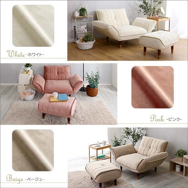 大人かわいいインテリア ベロアカウチソファ 1人掛け+オットマンセット【Chammy -チャミー-】