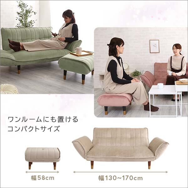 大人かわいいインテリア ベロアカウチソファ 2人掛け+オットマンセット【Chammy -チャミー-】