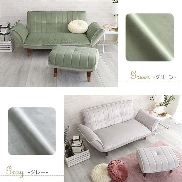 ベロア生地のコンパクトカウチソファ用2人掛け+オットマンセット!