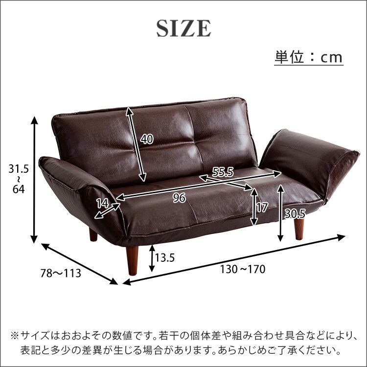 お部屋に置くだけでインパクトのあるヴィンテージカウチソファ!座面幅は約130〜170cmのリクライニングができ、14段階のギア調整が可能。
