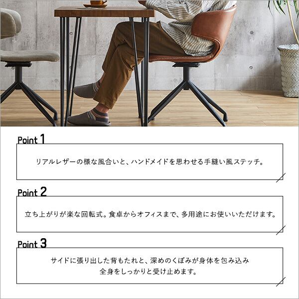 ヴィンテージレザー調 ダイニングラウンドチェア 1脚単品 【ARMOS】