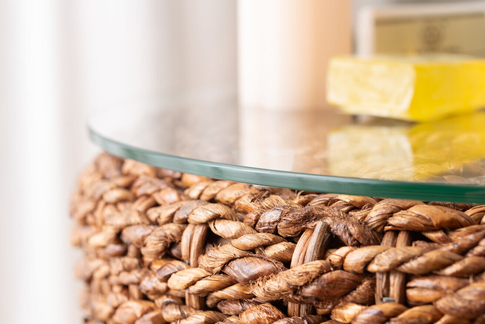 ●自然素材のアバカをフレームに使用し、ガラス天板を合わせた涼しげなデザインが、贅沢なアジアンスタイルを演出。