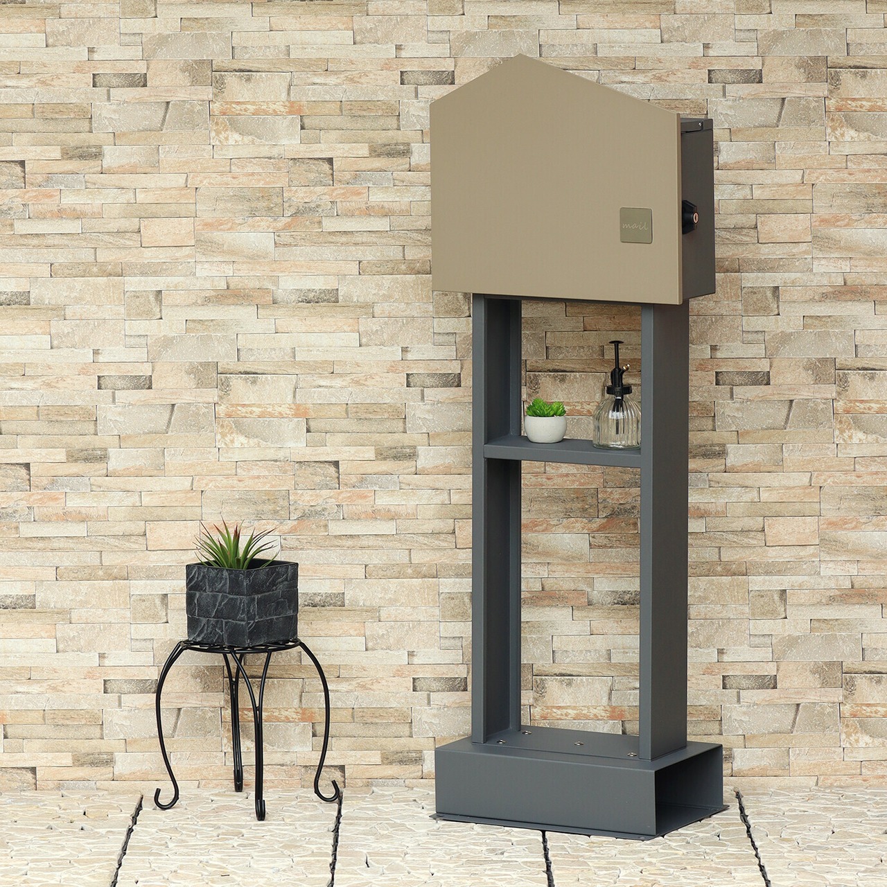 「郵便受け本体」、「支柱」、「台座」の3パーツのみをボルトで固定する簡易組立の商品となります。郵便取り出し口内部にストッパーが付いているため、取り出し時に郵便物が前に落ちにくい設計となっております。キー、アンカーボルトが付属しており、お客様で追加でご用意頂くものはなく、すぐにご使用いただけます。