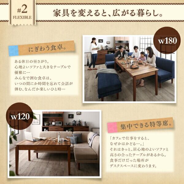 くつろげる空間(=Living)+ 食事の空間(=Dining)を1つにまとめたもの。ゆったり過ごせるソファと作業のしやすいテーブル。そして、L字型で省スペースな為、置く場所も選びません。