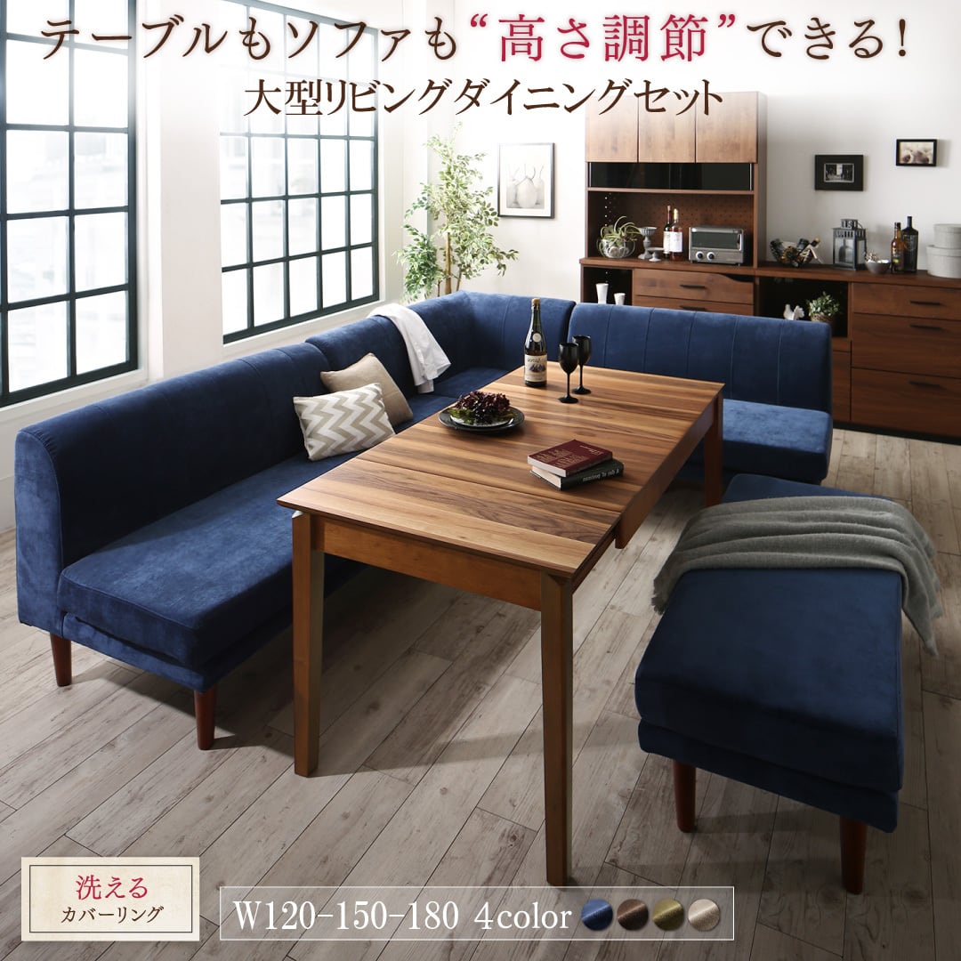 高さ調節可能ポケットコイル大型リビングダイニングセット Adolf アドルフ 5点:テーブル+ソファ4点