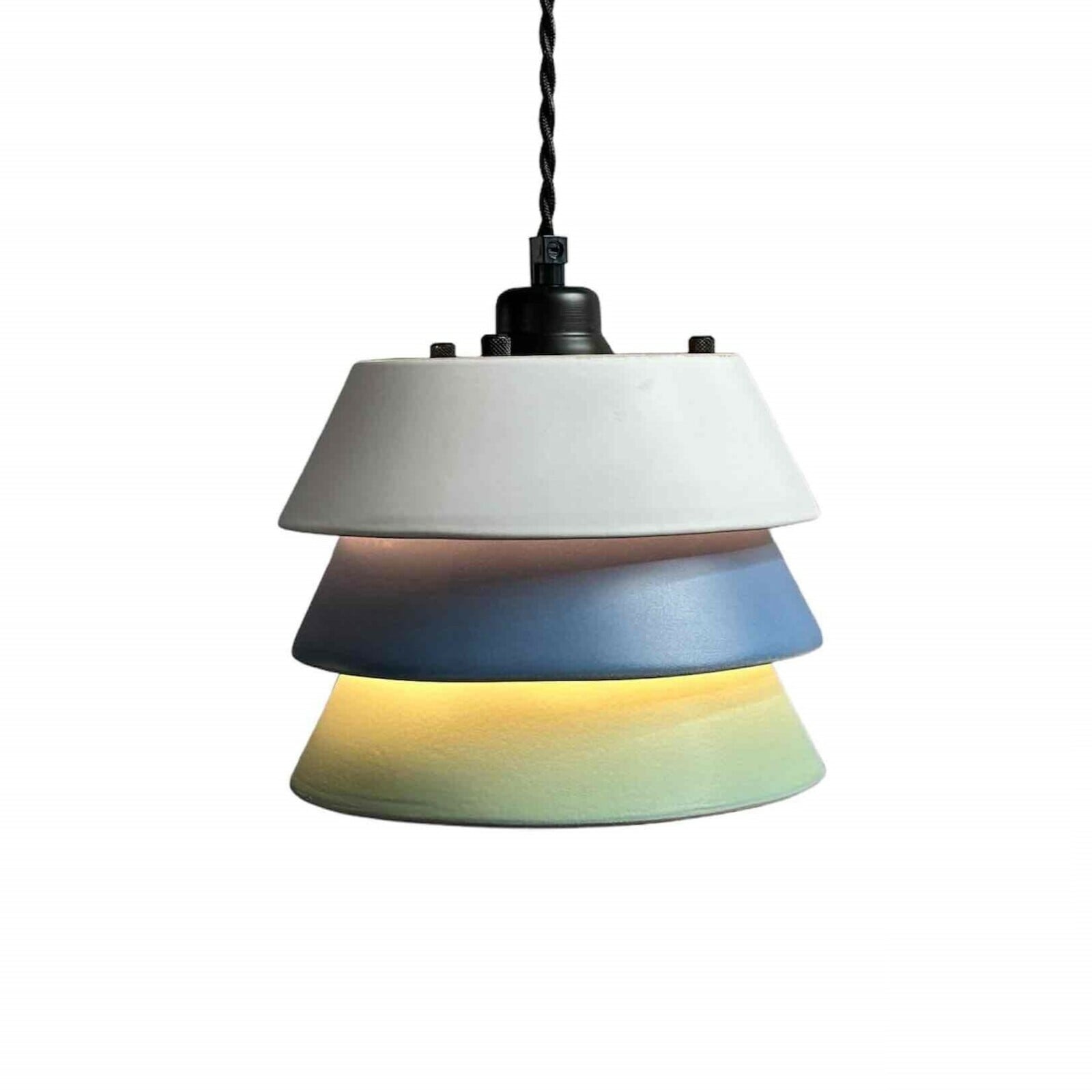 トスカーナの土で焼かれた温もりある3色の陶器を組み合わせることで色のグラデーションが生まれ、漏れる灯りに表情が生まれます。