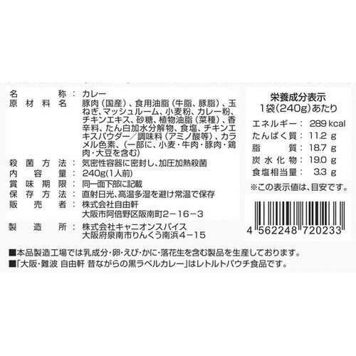 ■規格:「自由軒」昔ながらの黒ラベルカレー240g×6(泉州産玉葱使用オリジナル商品)