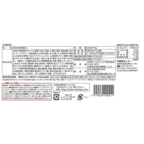 ■規格:お好み焼220g、千房お好み焼ソース25g、ホワイトソース10g、かつお節1g、あおさのり0.2g×各10