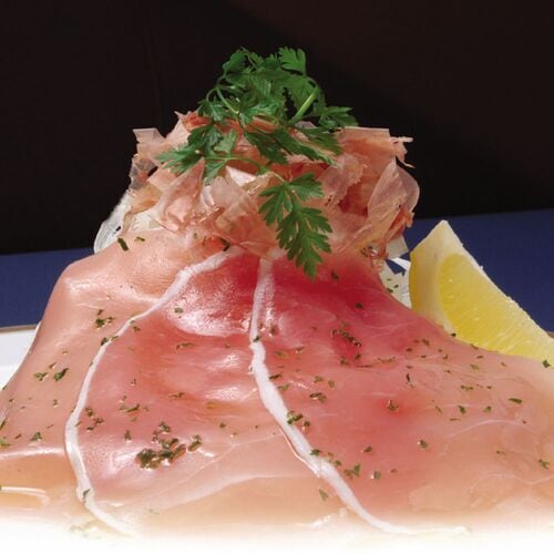 北海道生まれのしばれ生ハムは、豚のロース肉にドイツ岩塩で仕上げたまろやかなうす塩味です。厚切りにしてお刺身風にわさびを添えて食べるのも美味です。