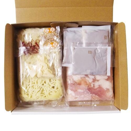 ■規格:牛もつ肉(国内産)100g×2袋、ちゃんぽん麺180g×1玉、にんにく3g×1袋、唐辛子0.5g×1袋、白ごま0.7g×1袋、もつ鍋用濃縮とんこつスープ36g×3袋