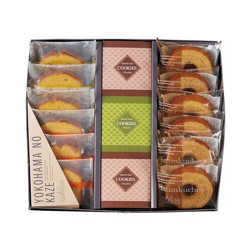 神奈川 「YOKOHAMA NO KAZE」 プレミアム焼菓子ギフト(バウムクーヘン6個、カットケーキ(レモン・オレンジ)各3個、チョコクッキー 2袋、抹茶クッキー 1袋) / 詰め合わせ 送料無料