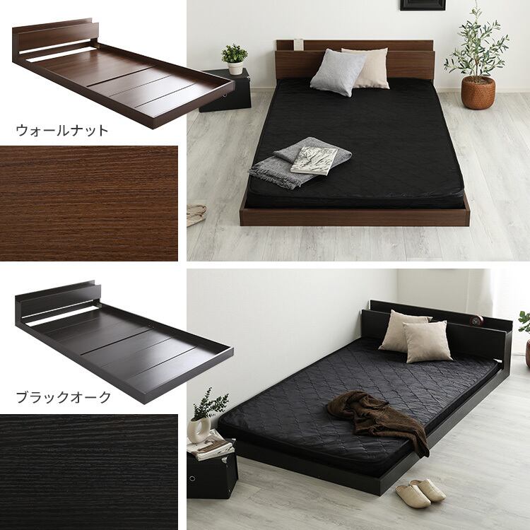 デザインフロアベッドはタブレットも立て掛けられる宮棚・2口コンセント付きです!