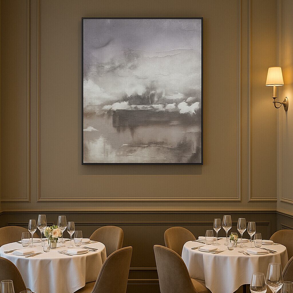雲と霧が漂うようなテクスチャと奥行のある表現が、空間に静けさと上質な雰囲気をもたらします。