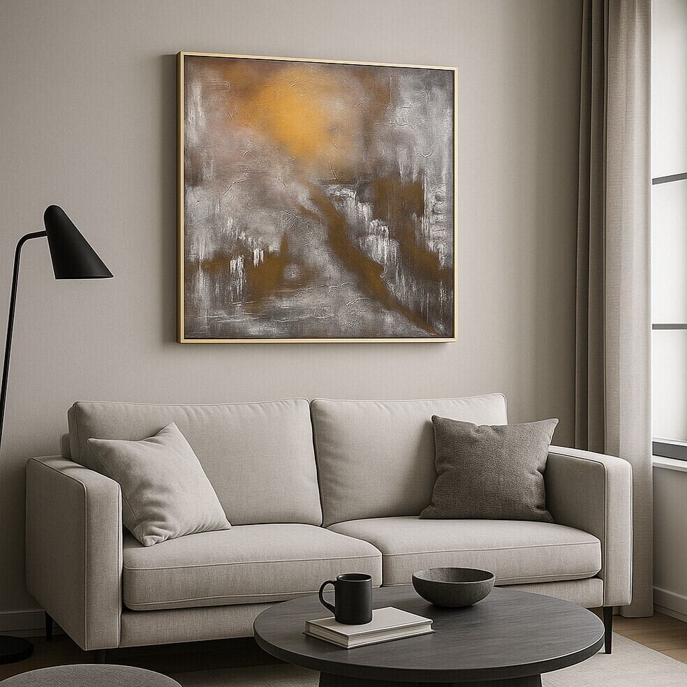 抽象的なテクスチャと重厚な色彩が織りなす、モダンで洗練されたアートパネルです。