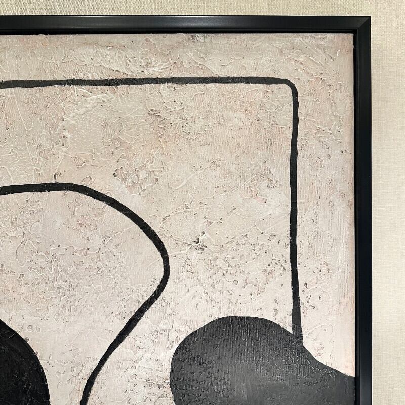 シンプルでありながら存在感を放つ、モノクロームの抽象アートパネルです。