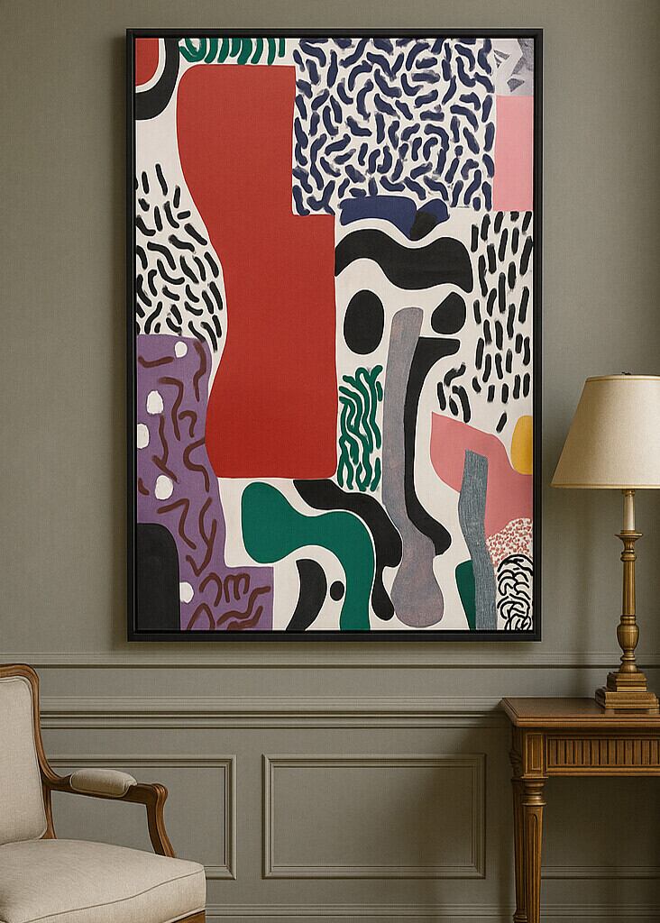 自由な形と鮮やかな色彩が奏でる、現代アートのリズム。