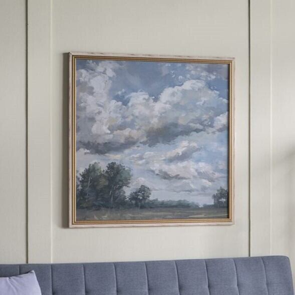 柔らかな筆致で描かれた雲と、静かな木立が心を落ち着かせ、まるで風の音まで感じられるような臨場感が魅力です。