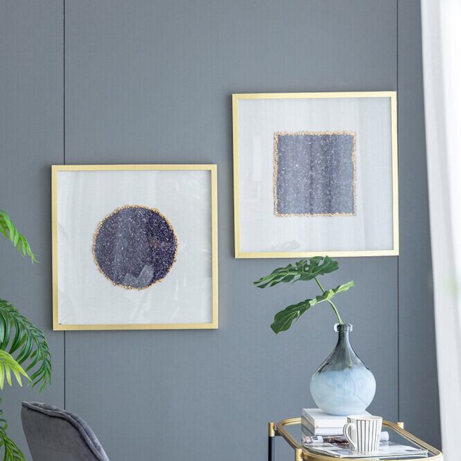 パープルクリスタルの額入りウォールアート 2点セット アートフレーム 抽象画