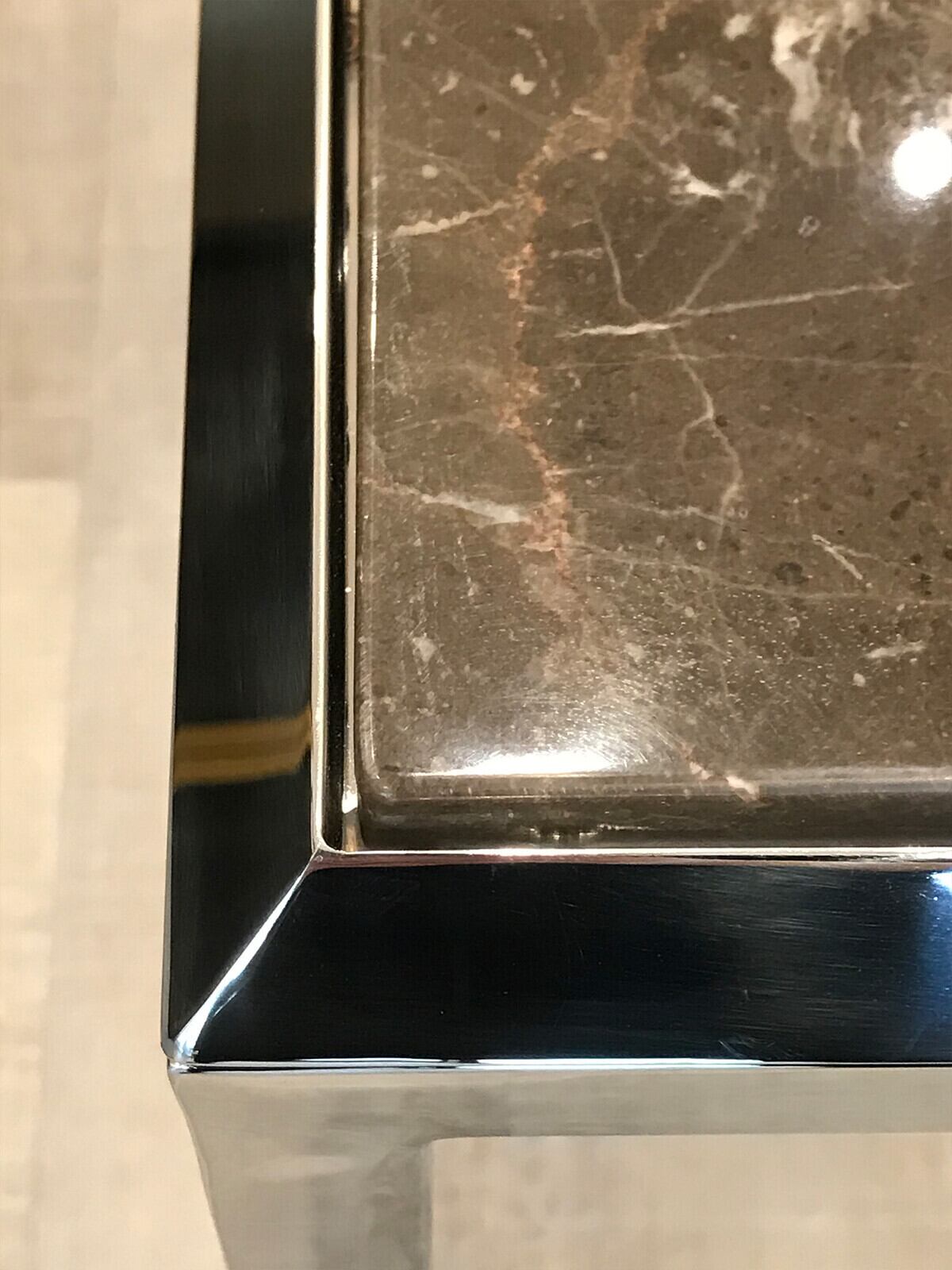 研磨仕上げのステンレススチールのサイドテーブルです。