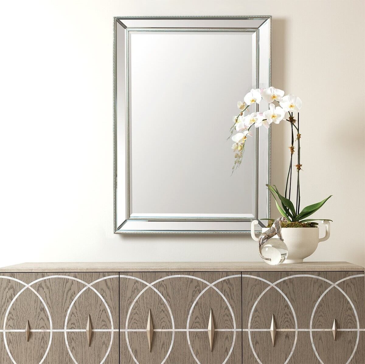 すっきりとシンプルな装飾が、ミラーの存在感を引き立たせてくれます。