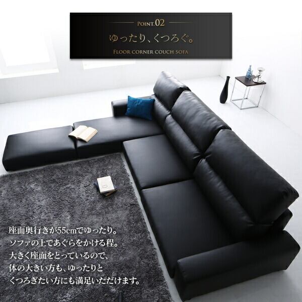 フロアコーナーカウチソファ Levin レヴィン ソファ&オットマンセット4人掛け