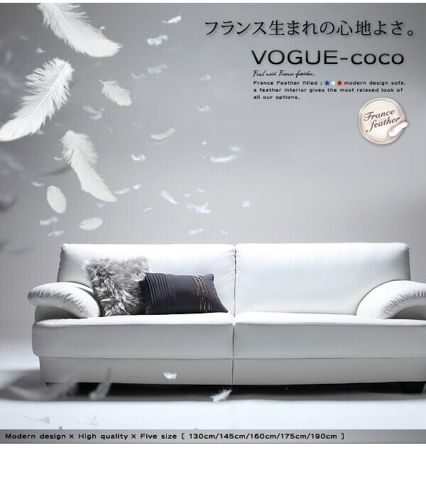 フランス産フェザー入りモダンデザインソファ VOGUE-coco ヴォーグ・ココ 幅190cm