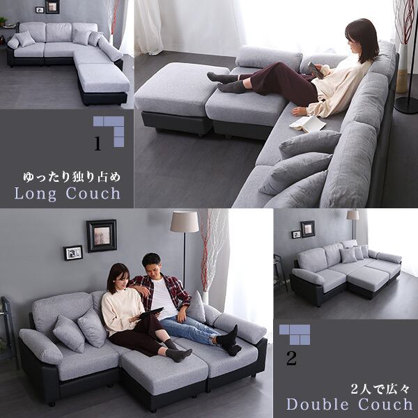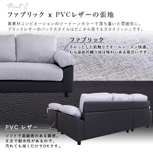 レイアウトバリエーションが豊富なファブリック×PVCレザーのカウチソファです!