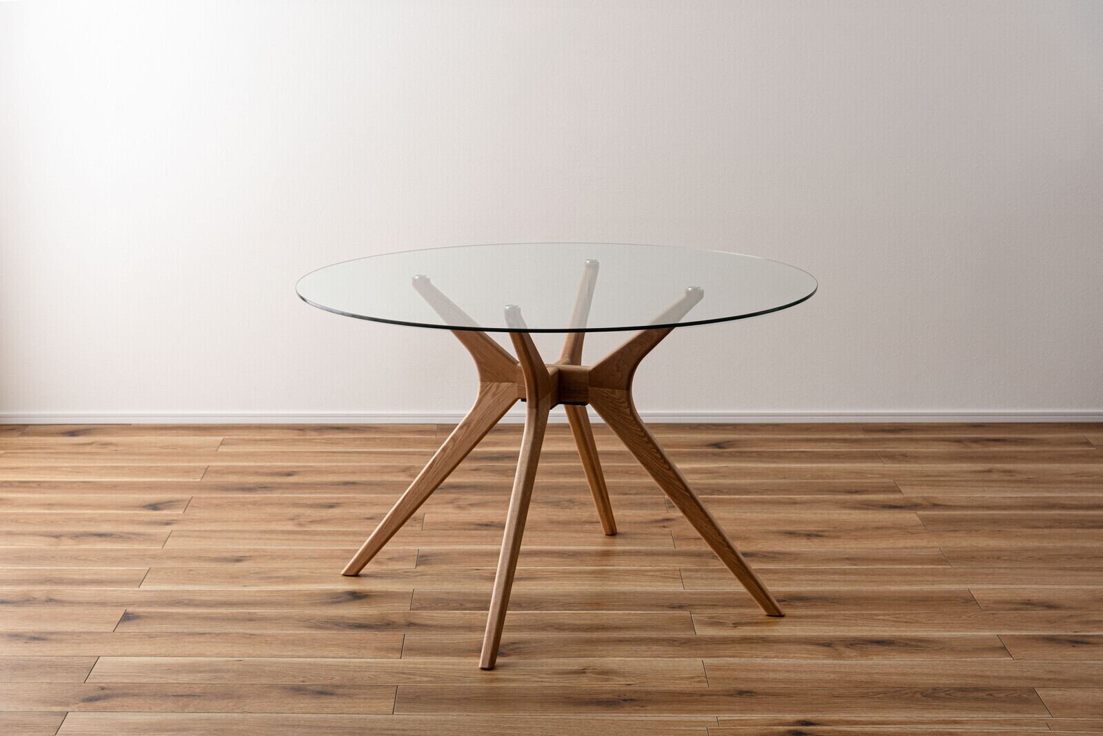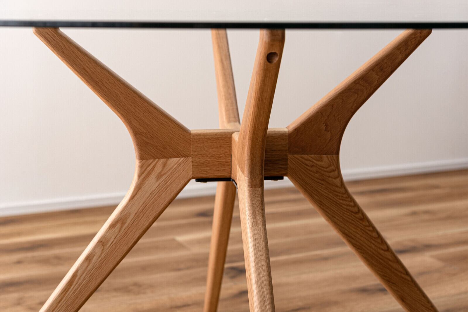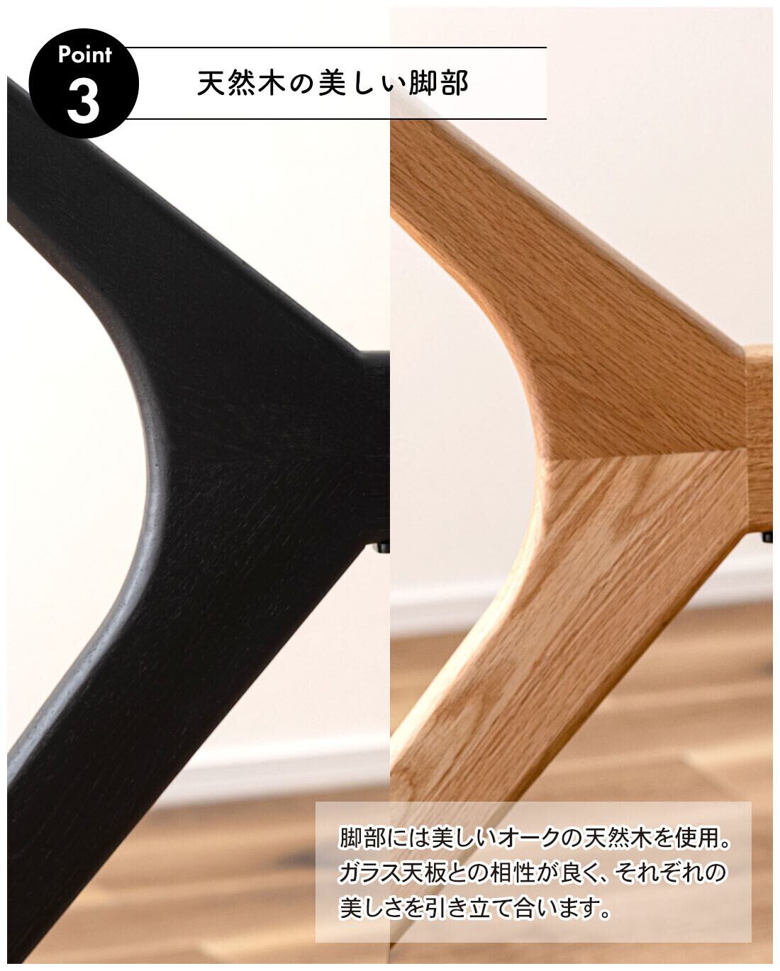 ガラス天板は、オーク材との相性も良くの美しさを引き立てます。