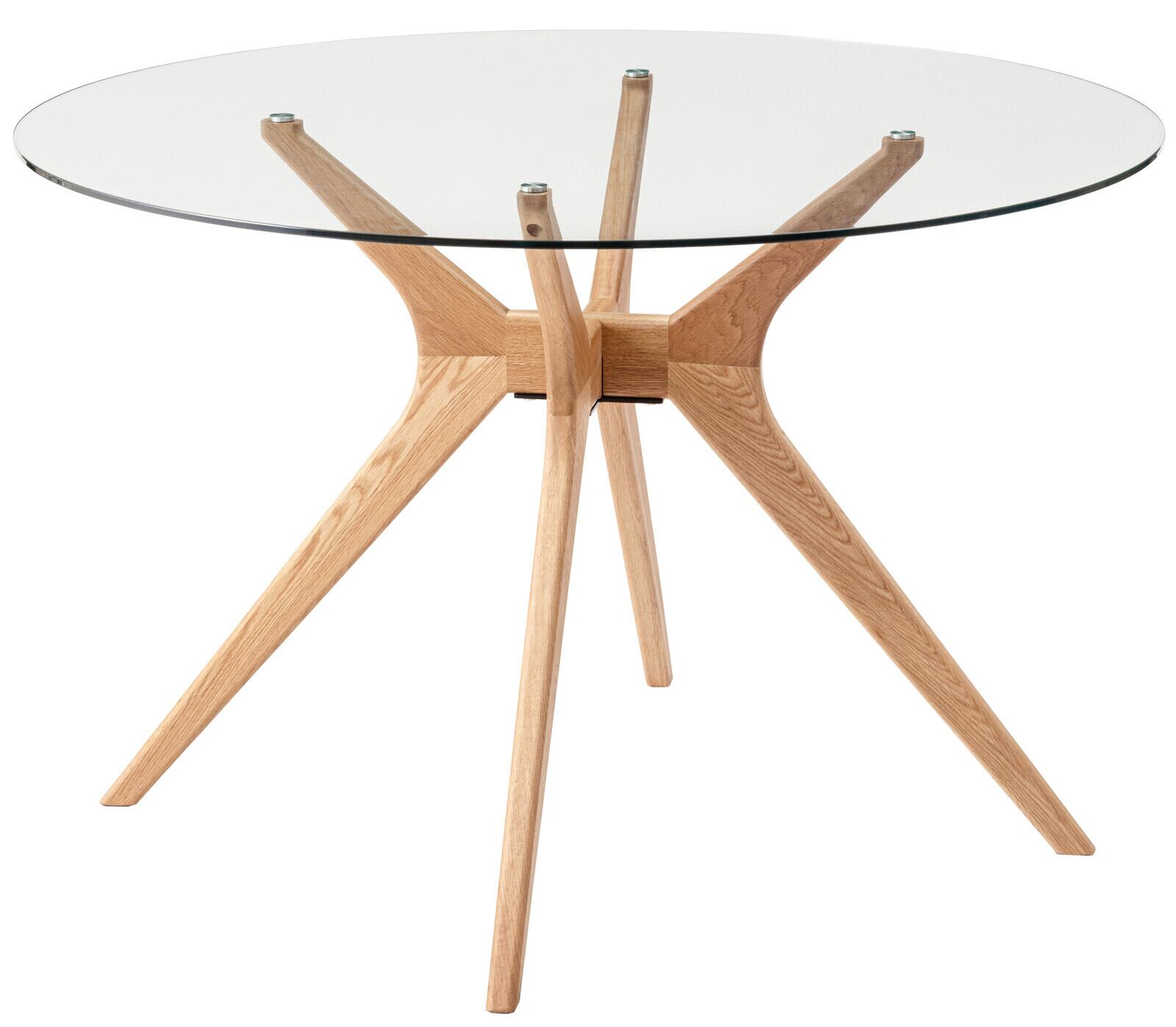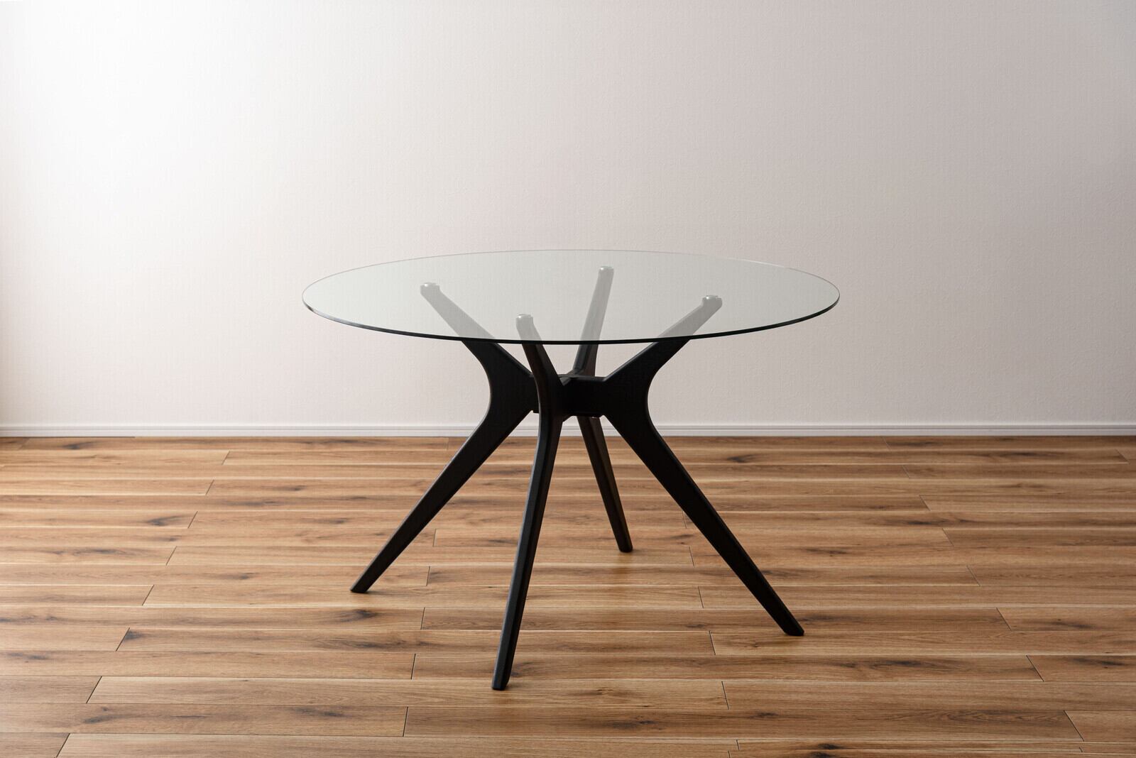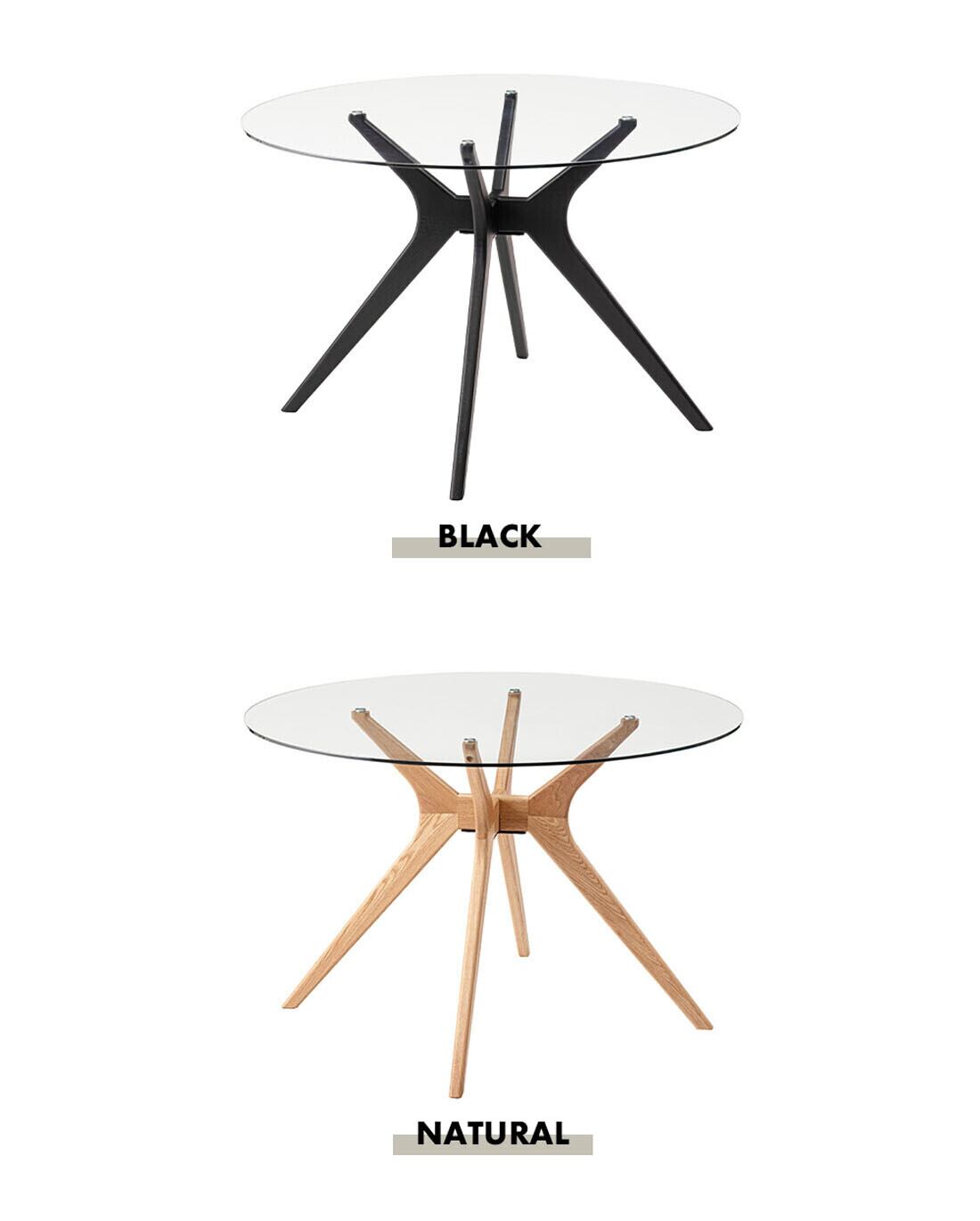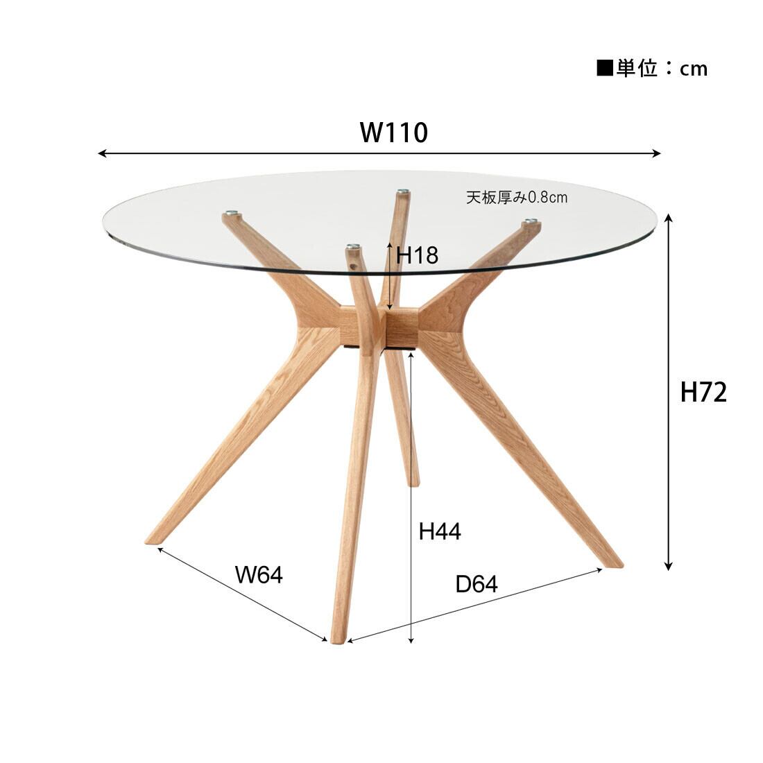 ラウンドガラステーブル 幅110 ダイニングテーブル テーブル 4人掛け 楕円形 円形 ガラス 天然木 北欧