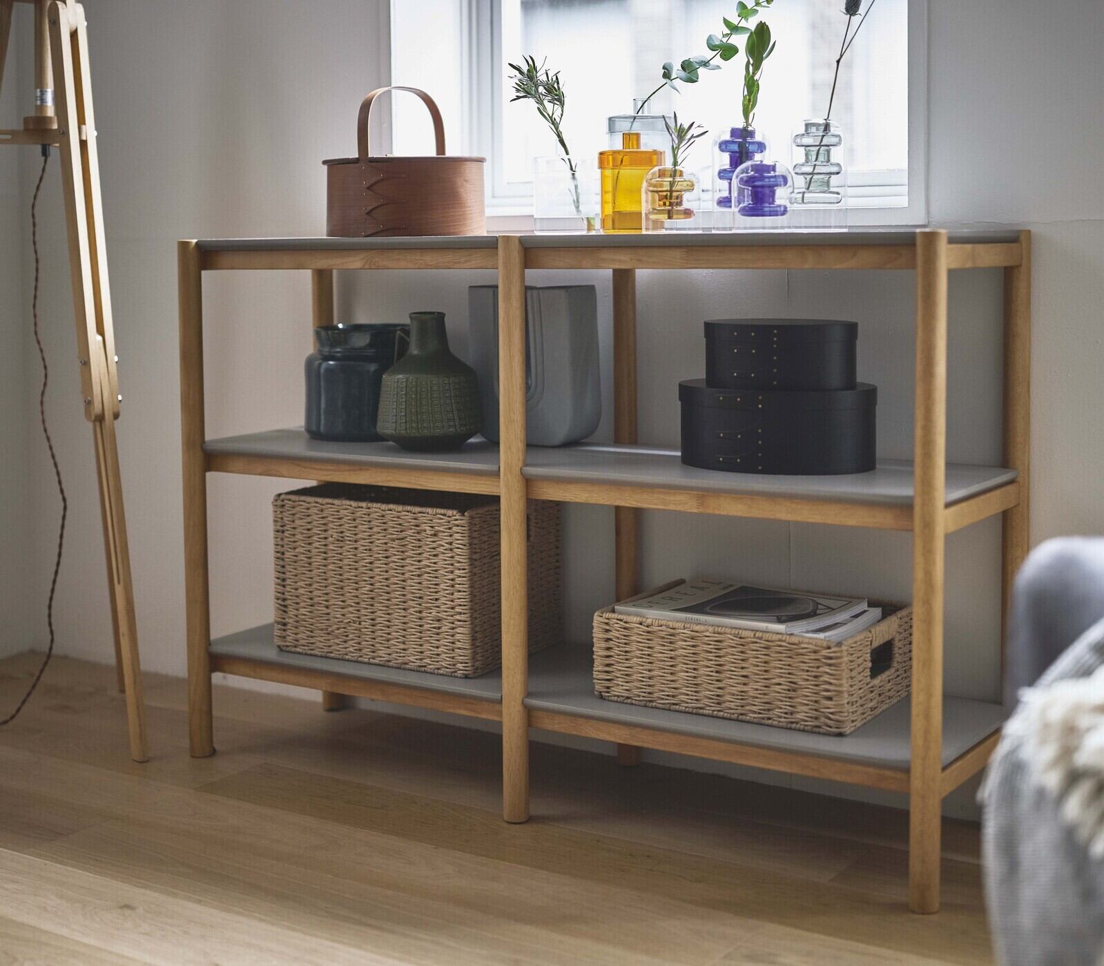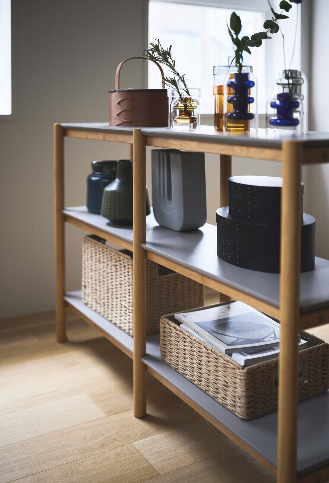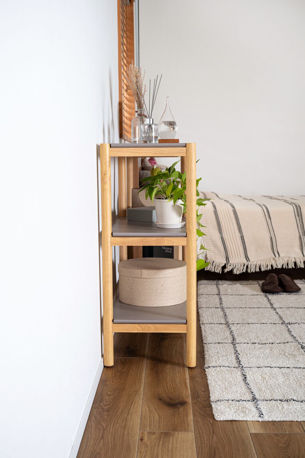 ナチュラル×グレーのやさしい配色が印象的なシェルフです。