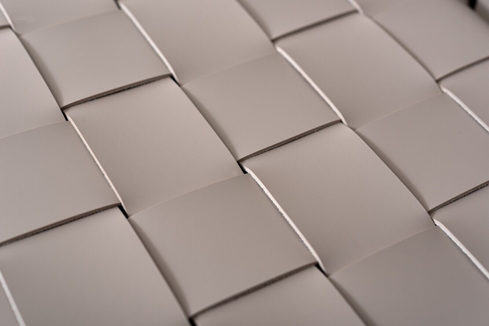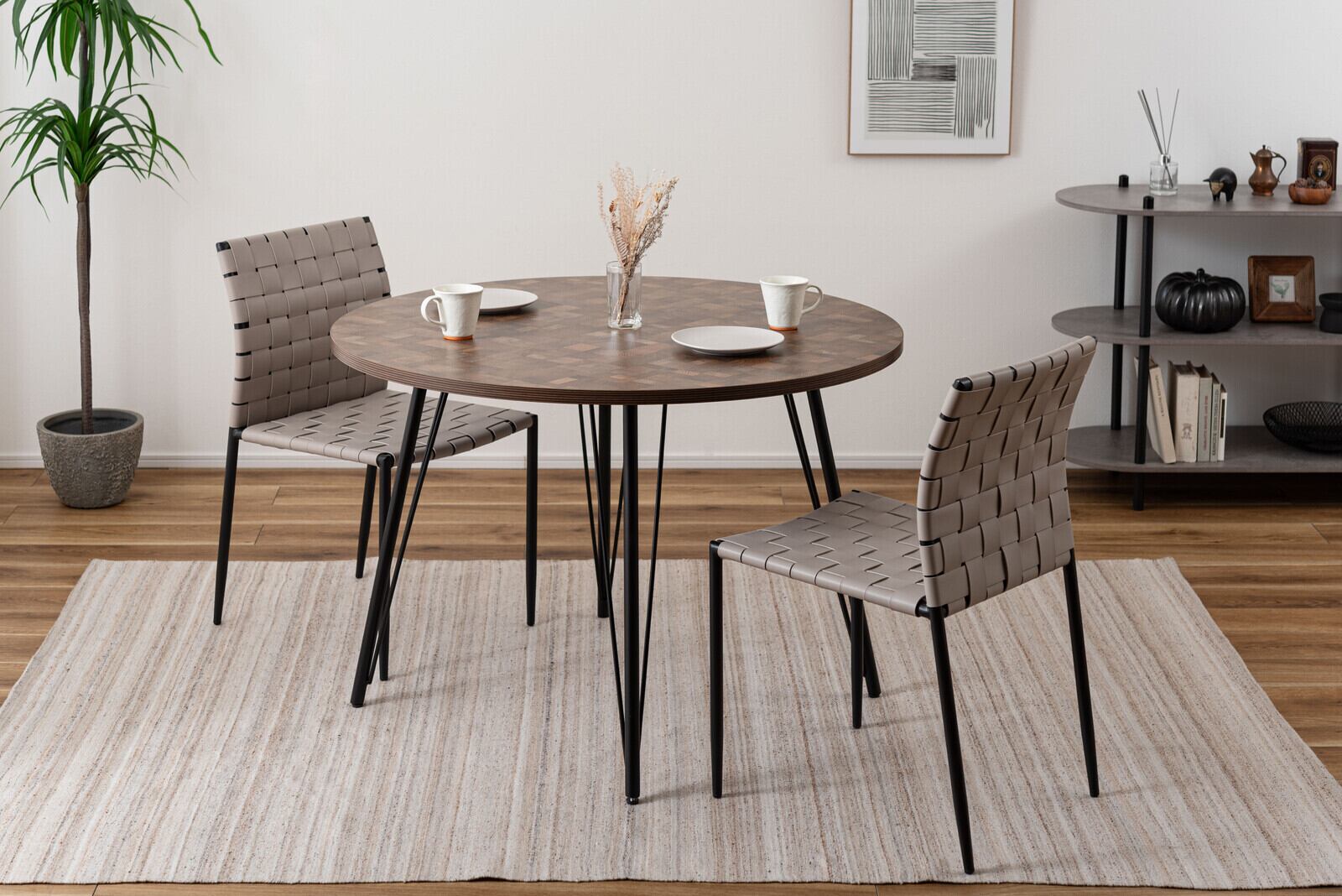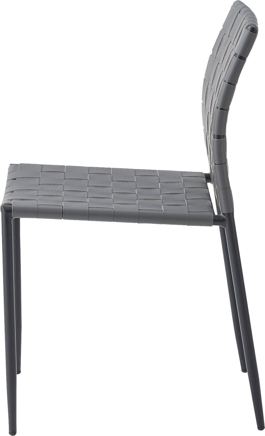 合皮の生地を編み込んだ背もたれと座面が程よくしなり、 ゆったりと身体を支えてくれるチェアです。