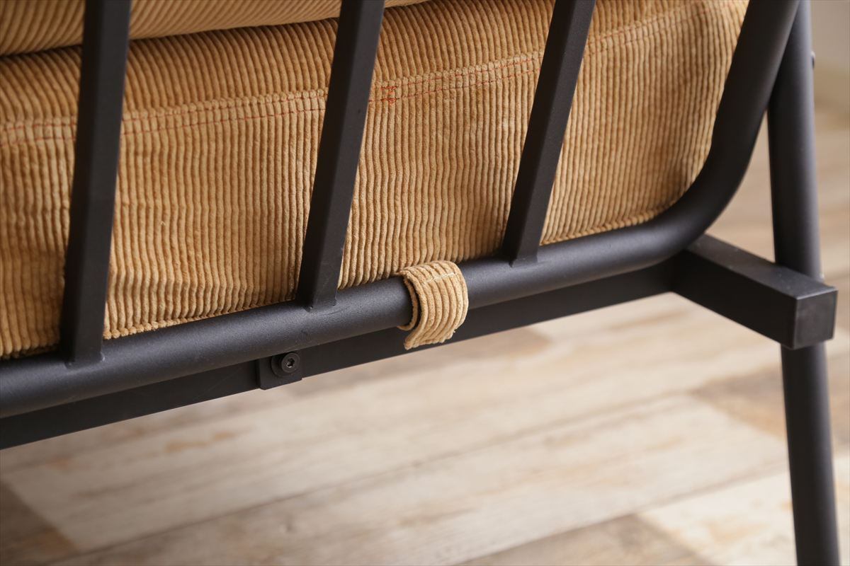 コーデュロイの柔らかな質感に、スチールと天然木を組み合わせた『Basquiat(バスキア)』2人掛けソファです。