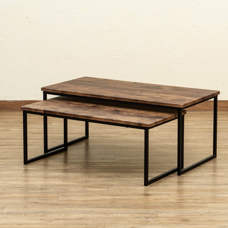 小さいサイズは大きいサイズのテーブルの下に収まる入れ子式です。