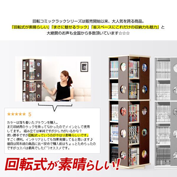 回転式の本棚!回転コミックラック(5段タイプ)【SWK-5】(本棚 回転 コミック)